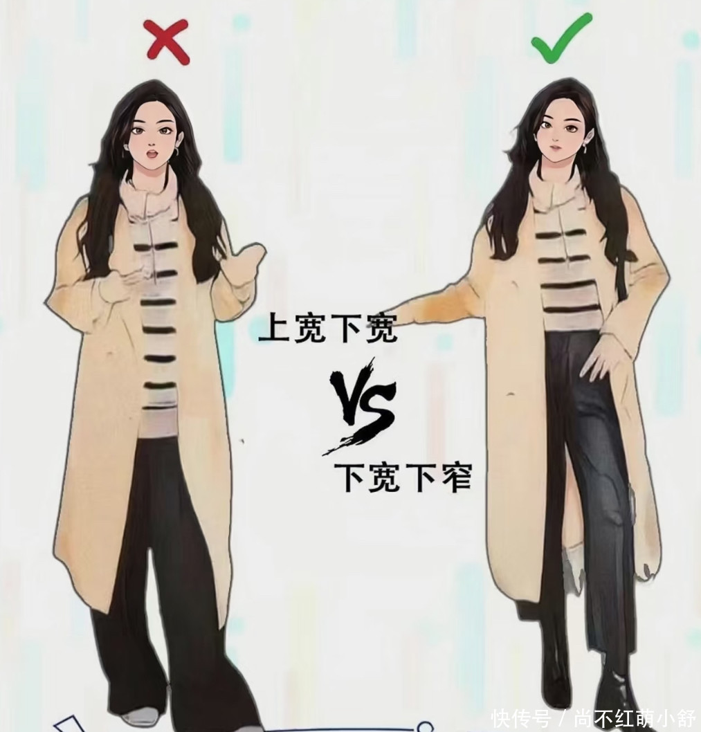 很多人为了保暖,喜欢在大衣里面塞进厚厚的宽松毛衣,结果就是虎背熊腰,毫无曲线可言。毕竟大衣本身有一定体积感,如果内搭再宽松,两层叠加就会产生1+1>2的膨胀效果,尤其对微胖身材非常不友好。